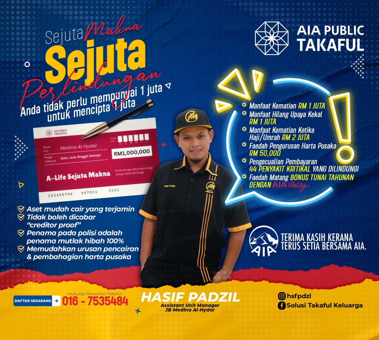 Hibah merupakan salah satu jenis perlindungan yang terdapat di AIA. Perlindungan ini boleh membantu diri anda meneruskan kehidupan sekiranya terkena Hilang Upaya Kekal, dan membantu keluarga anda meneruskan kehidupan sekiranya berlaku kematian. Selain daripada Hibah Takaful, kami juga menawarkan pelan takaful lain seperti Medical Card Takaful